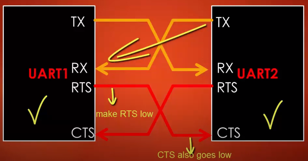 이다. 순서상 RTS가 active low가 먼저 되어야 CTS가 그에 따라 low가 되고 TX 할 수 있는 상황이다.